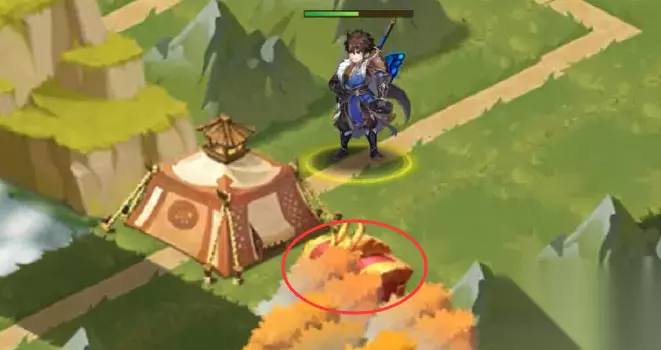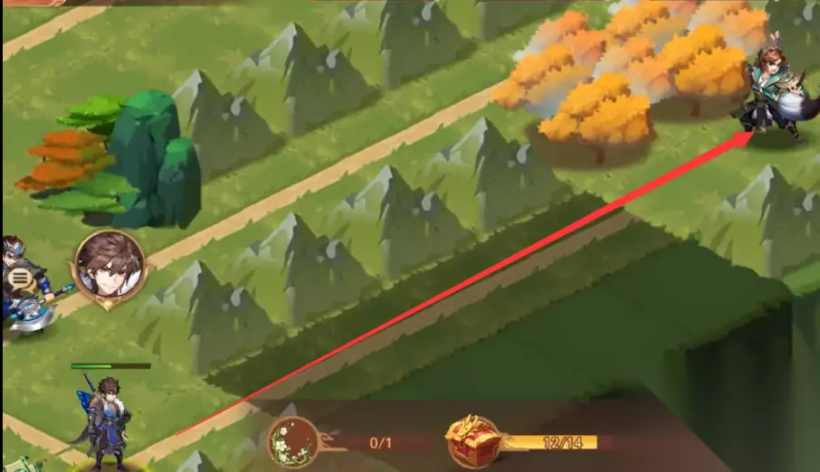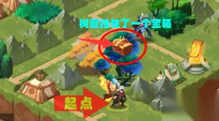 4、上方的路线打通,我们往左边走,走到如下图所示的地方(就在进副本起点处边上),蓝色树冠下藏着第3个宝箱