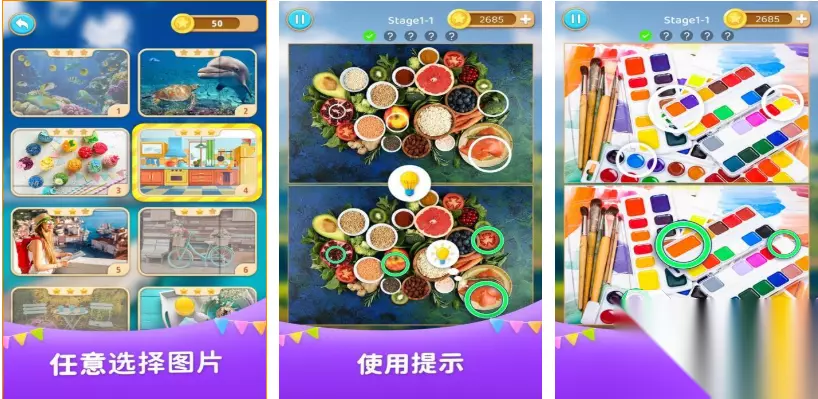 这是款整体气氛很欢乐的找茬主题独立游戏,超简单的找茬类玩法有助于消磨时间、强化耐心,游戏关卡具备无限的时长能让大家尽情寻找不同点,地图自带变焦功能可以伸缩视角找不同,萌系卡通画风让找茬的过程更显快乐,超丰富的关卡与互动模式也让找茬高手乐在其中,休闲时刻找找茬排解孤独也是明智之举。 高速下载 普通下载 5、《找不同》