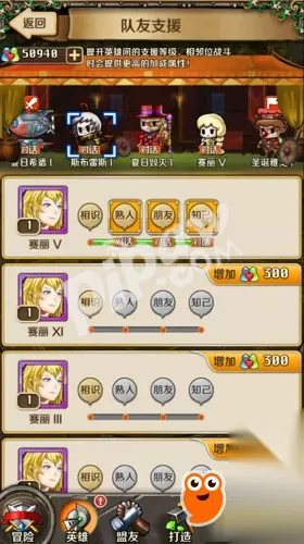 玩家在游戏中,使用队友支援来战斗,从而提升英雄的支援关系。当达成新的支援等级后,就可以查看对应的支援小剧场啦,剧情都是超级萌啊~等到伴侣英雄间的亲密度达到上限,就可以消耗爱情信物来结婚,并且婚后可以培养出子代英雄。