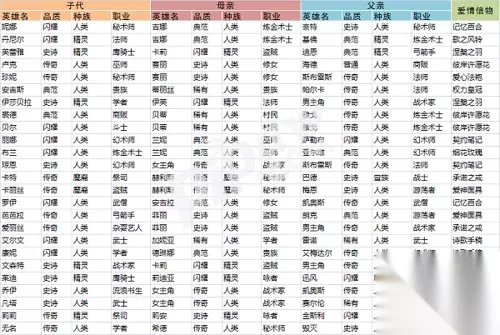 在进行支援的时候,大家可以依据以上的数据进行选择或者重点培养。最后给大家一个总结一份可以结婚的英雄及结婚所需爱情信物一览表~大家可以根据品质、种族和职业来规划自己的养成计划哟~