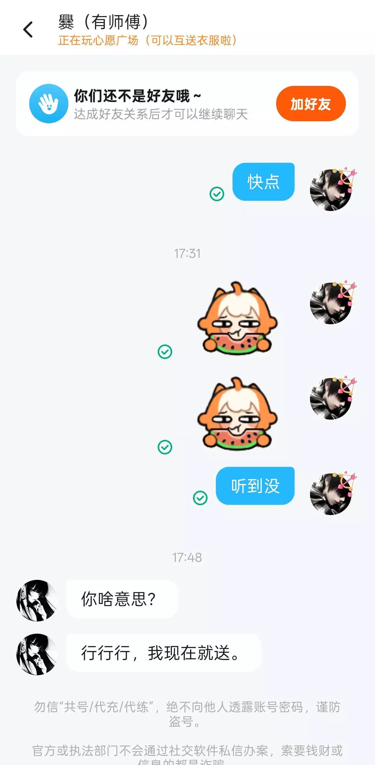 当初我说护送他,说我是他,我送他两个,他就清空我心愿单后面我送完后,他就直接把我拉黑