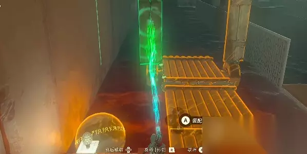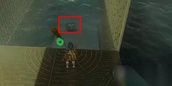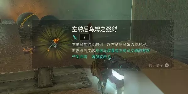 5、来到下图位置的水底可以看到一个宝箱,使用究极手将他移到平台上,打开后可以获得【左纳尼乌姆之强剑】。