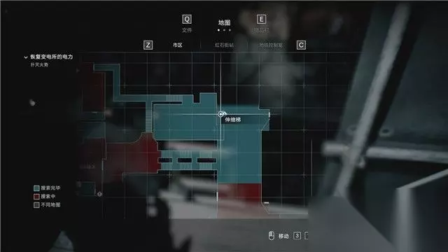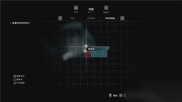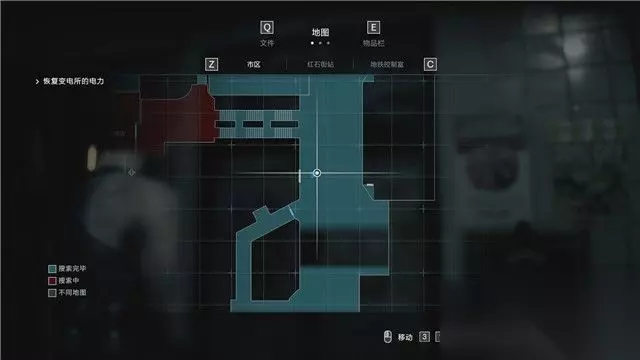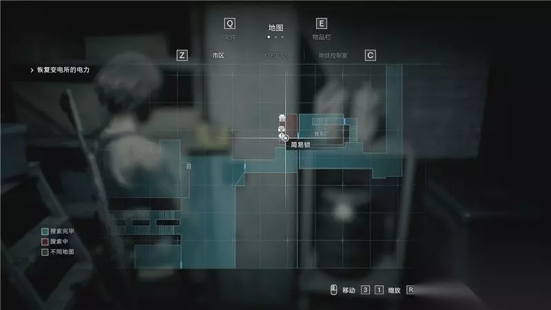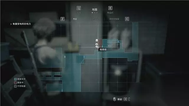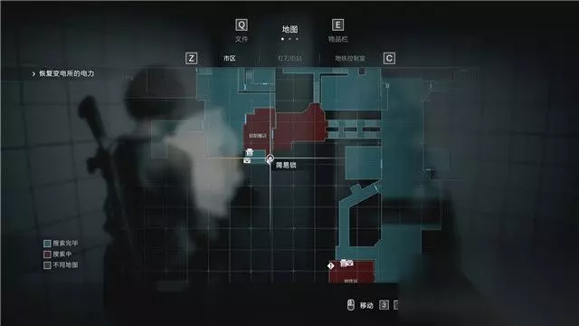地图 地图可以标识目前你所探索区域的完成度,红色代表你尚未取得该区域的所有物品,蓝色则标识这个区域已无需探索。 同时,当你探索到一些门锁(蓝色门锁表示可通过,红色表示不能通过,灰色标识未知),重要对象(例如重要任务位置,打印机,储物箱等),它都会显示出来。