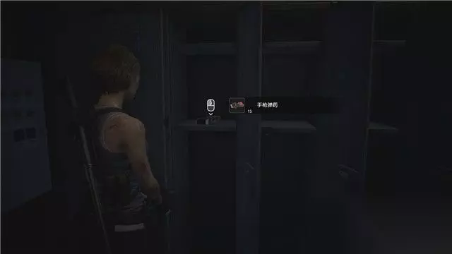 这里有个储物箱,撬锁之后可以获得里面的一组手枪弹药。