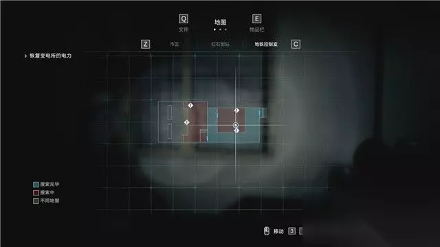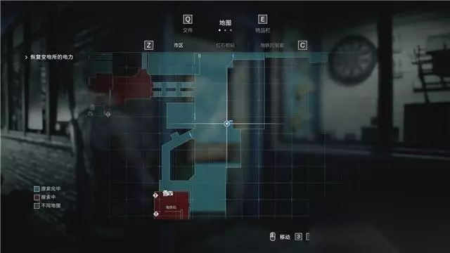 再往警署里面走,可以找到地铁控制室。 调查这里控制台上的工作日志,可以获得让列车启动的办法。 但目前的任务是先让这里恢复电力。