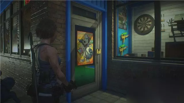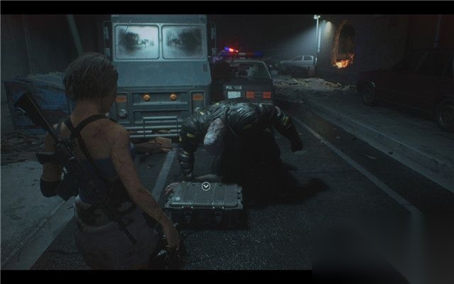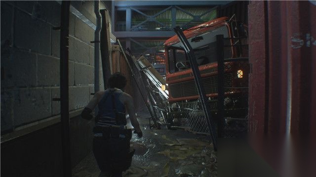 打败变异人后,吉尔会掉下建筑物,最终来到警察局停车场所处的后街区域。