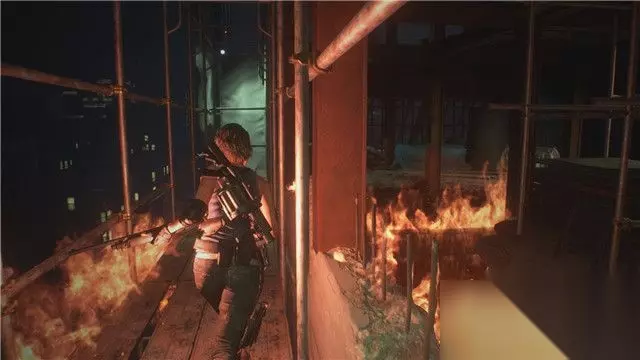 你会来到一个正在施工的建筑物立面。 由于变异人的追赶,你不能停下脚步,不然自己就会陷入火海之中。