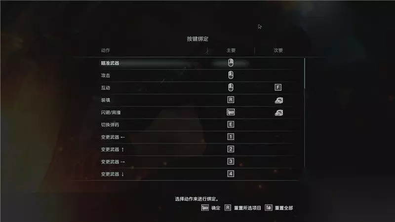 游戏操作: 键盘/鼠标 移动-ASDW 奔跑-Shift 武器瞄准-鼠标右键 射击-鼠标左键 互动-鼠标左键/F 填弹-R/鼠标中键 闪避/撞肩-空格/鼠标中键 切换弹药-E 更换武器-1,2,3,4 开启地图-M 开启物品栏-I 菜单确定-空格 切换菜单标签-Q/E 切换菜单类-Z/C