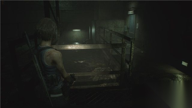接下来,探索下水道。 来到这里,右边的那扇门需要使用电池才可以打开。 你需要沿着污水下去。