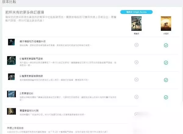 日前,EA官方宣布推出《泰坦陨落2:年度版(Titanfall 2: Ultimate Edition)》,售价40美元,游戏目前已经以数字形式登陆了PS商城,Xbox商城和Origin。 《泰坦陨落2》年度版预告: 号称是“回归2016年最令人惊喜射击游戏的最佳方式”,《泰坦陨落2》年度版不仅含有数字豪华版的全部内容,而且含有一个快速上手组合包,可以立即解锁所有泰坦和铁驭,还能透过资金、双倍经验代币和适用于 R-201 卡宾枪的自订战斗涂装来武装自己,让你在边境上英姿焕发。 《泰坦陨落2》年度版包含游戏本体、豪华版内容(烈焰和离子至尊泰坦、用于 6 具泰坦的豪华版战斗涂装、用于所有泰坦、铁驭和武器的豪华版迷彩、用于 6 具泰坦的豪华版机头艺术、豪华版唿叫代号)与快速上手组合包内容(解锁所有泰坦、解锁所有铁驭战术、用于解锁装备、外观和工具的 500 个代币、10 个双倍经验代币、地下 R-201 卡宾枪战斗涂装)。 值得一提的是,《泰坦陨落2》还刚刚加入了EA和Origin Access,会员玩家可以免费玩。最近亚马逊法国还泄露了一个《战地1》的年度版,不过EA目前尚未正式公布。