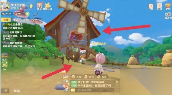 2、到达开心农场后系统会自动识别道路并带玩家找到梅森,找到梅森后就会自动停止,接着就可以看到梅森后边的梅森小屋了,可以向它购买各式各样的种子道具。