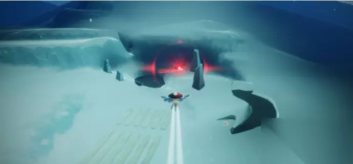 5、在远处就可以看到红色光芒了,继续往前飞。