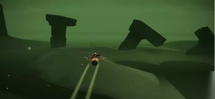 2、往前飞,看到倒塌的桅杆。