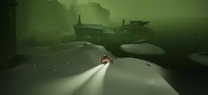 4、来到沉船图,朝着大船飞过去。
