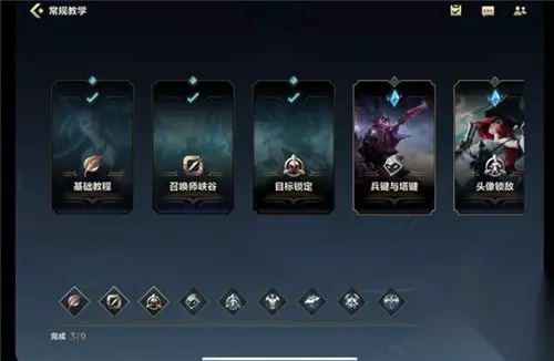 4.在教学中包含了基础教程、召唤师峡谷介绍、目标锁定、兵键与塔键、头像锁敌等。