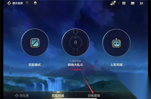 2.进入模式选择界面后,选择下方的【训练基地】;