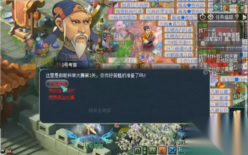 科举分为乡试、会试和殿试三个阶段,乡试是入门关卡,只要等级达到10级以上就能参加,在建邺城找到考官开始答题,40道题里答对30道就能过关。会试难度稍高,需要在规定时间内跑遍20位考官,答对题目才能进入下一关,这里拼的就是手速和知识储备。殿试则是顶尖玩家的舞台,只有会试中表现最好的20名玩家才能参加,最终角逐出状元、榜眼和探花。