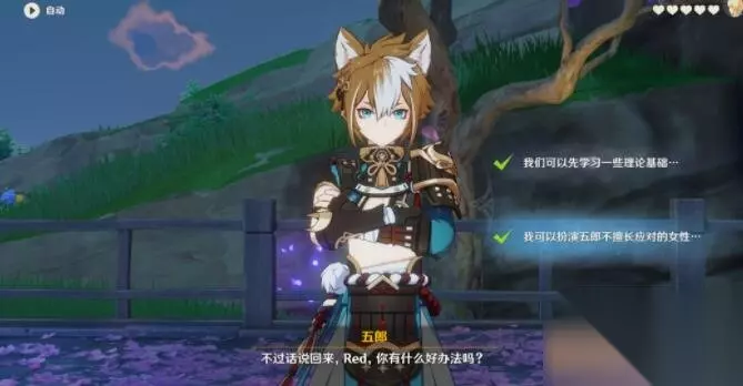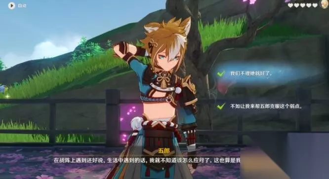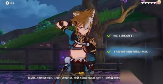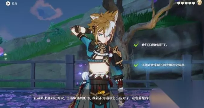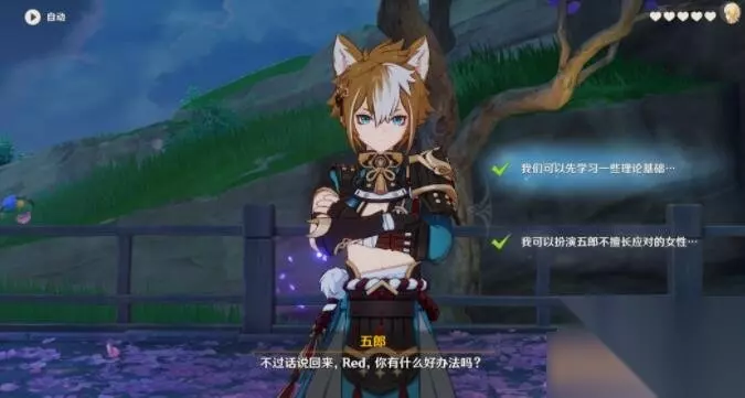 五郎邀约事件:一共分为五个分支,每个分支都会有不同剧情。 分支一 问题1:选择:“不如让我来帮五郎克服这个弱点。