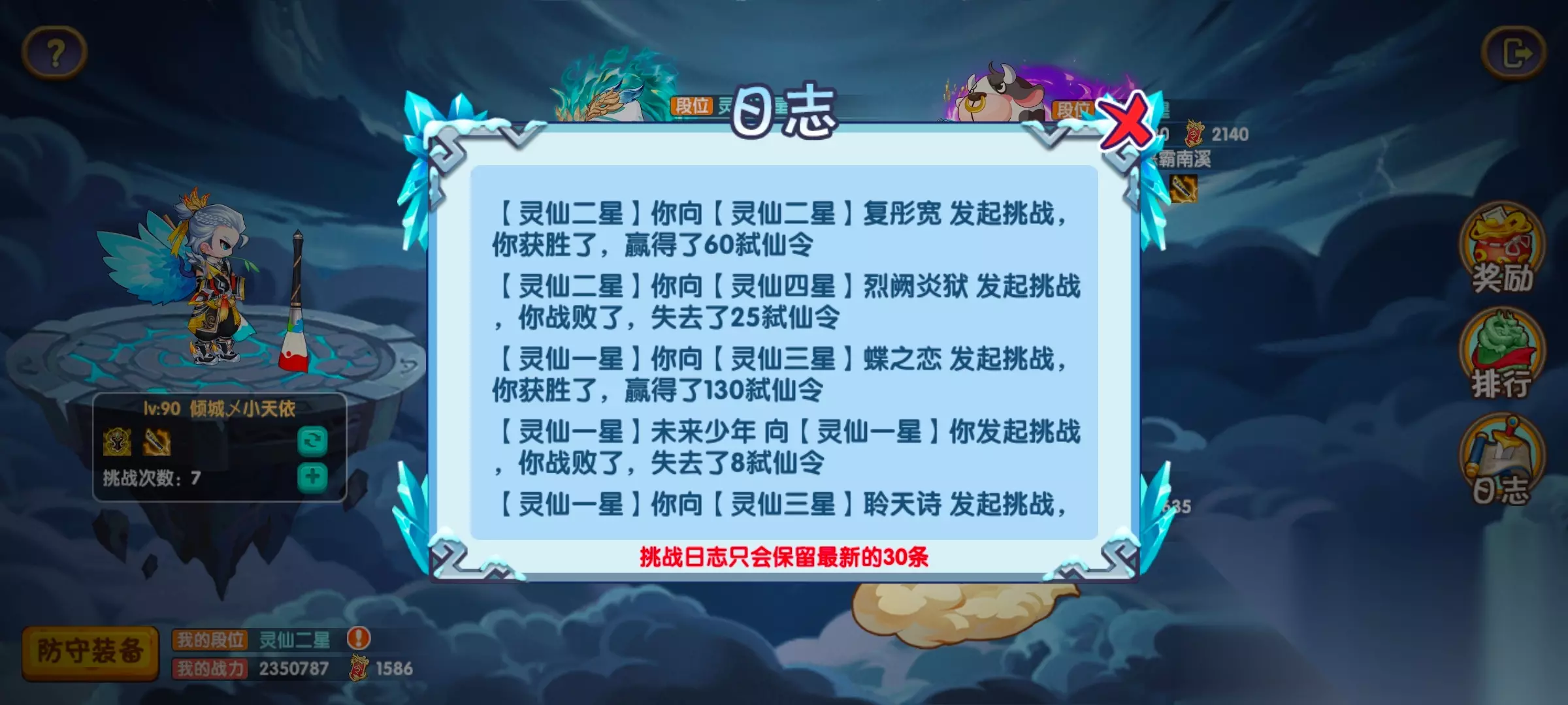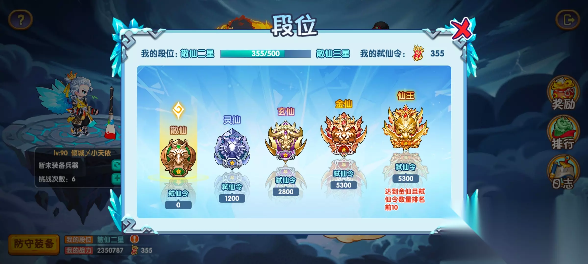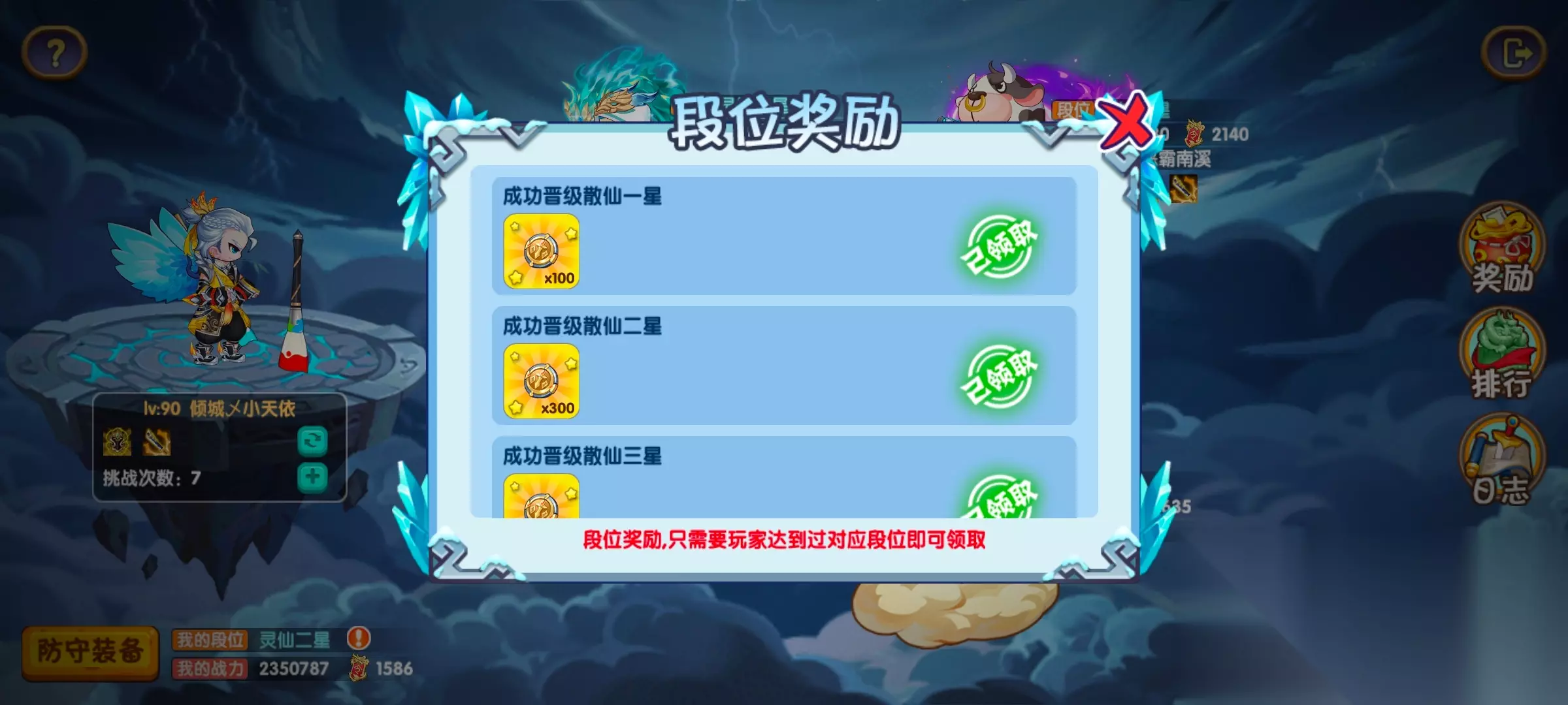 奖励就是段位奖励,每提升一次新的小段位都可以领取一次【仙灵币】奖励,段位越高奖励越多。这也是本次活动【仙灵币】获取的主要方式之一。