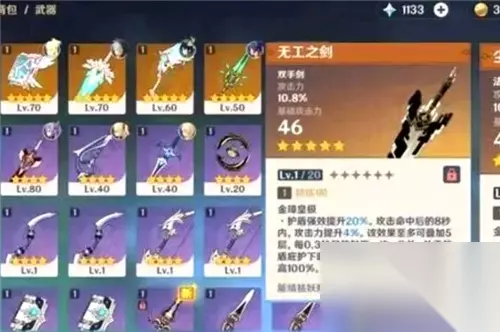 无工之剑 全攻击力词条,武器特性需要在护盾的保护下才可获得双倍增幅,并且还有一定的护盾强效。不过目前来看,护盾强效这个属性继承而来的护盾吃不到。适用角色:优菈、迪卢克、雷泽、辛焱。记住,做不到稳定护盾保护的情况下,这个武器不太行。