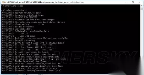 则代表地洞服务器开服成功 五、常见错误 1.缺少服务器令牌 表现现象为