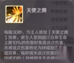 核心2技能:满级效果是16秒一次,将超过自身生命上限10%的伤害免疫,转为持续伤害效果,每秒损失5%,持续10秒,就相当于分期付款。奶妈是可以给你叠静心慢慢回上来的,每次5%的伤害总比被秒掉的好,这个技能打本PK都还可以。