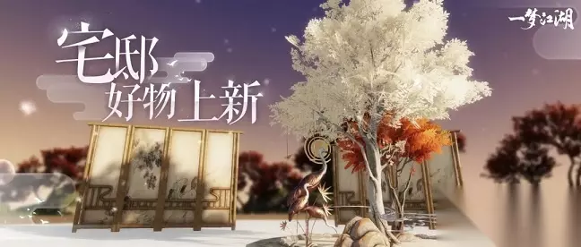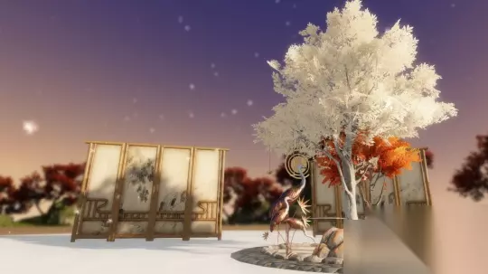 新家具·寒月桂 玉枝枯山水,别致景观 寒月桂·杂是一方枯山水小天地,营造司弟子们以素白色和金红色的两种树木搭配流云、仙鹤,动静相衬,让人一下子就联想起“芬馥天边桂,扶疏在月中”的绝美景象! 在家温一壶热酒,赏漫天繁星,怎能没有音乐作陪呢?除了带有星空元素的绝美家具,更有新乐器与特效一同上线!