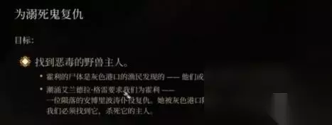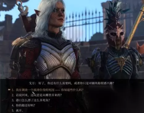 2、第二次选项里,1234选项皆可,对后续剧情没有太大影响,只是方便玩家了解情况,不管选哪一个都可以引申出潮涌阿兰德拉格雷雇佣我们杀死怪物。到这为止,我们任务就算是接完了,根据任务提示所知目标位于灰色海港处。