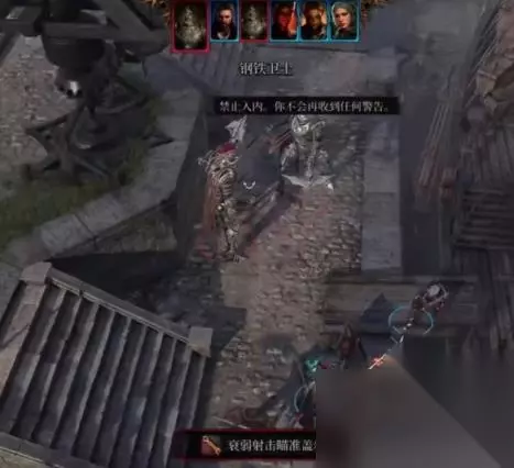 4、前往戈万提示的位置(在一艘停靠的木船旁边),会触发战斗,此为后续任务钢铁卫士的触发条件之一。 PS:本场战斗难度较高,钢铁卫士具有高昂的物理护甲,因此推荐多带几个法术卷轴,可以让战斗轻松很多。 也可以战斗前调整队伍展位,让法师站到台阶上层,占据高度优势打先手。