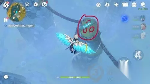 会看到下图山顶有三个风史莱姆。