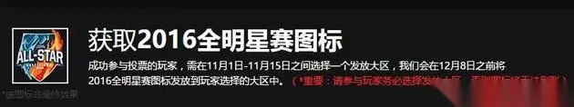 获取LOL2016全明星赛图标方法: 成功参与投票的玩家,需在11月1日-11月15日之间选择一个发放大区,我们会在12月8日之前将2016全明星赛图标发放到玩家选择的大区中。 (*重要:请参与玩家务必选择发放大区,否则图标将无法到账) 看了上文这篇lol2016全明星头像怎样获得 2016全明星赛图标获取方法,大家是否都了解了相关信息!找更多好玩热门的手机游戏就来233乐园! 如转载涉及版权等问题,请作者与我司联系,我司将在第一时间删除或支付稿酬。