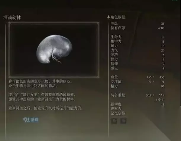 艾尔登法环洗点道具怎么拿 老头环的洗点道具是泪滴幼体。获取方法在下面。