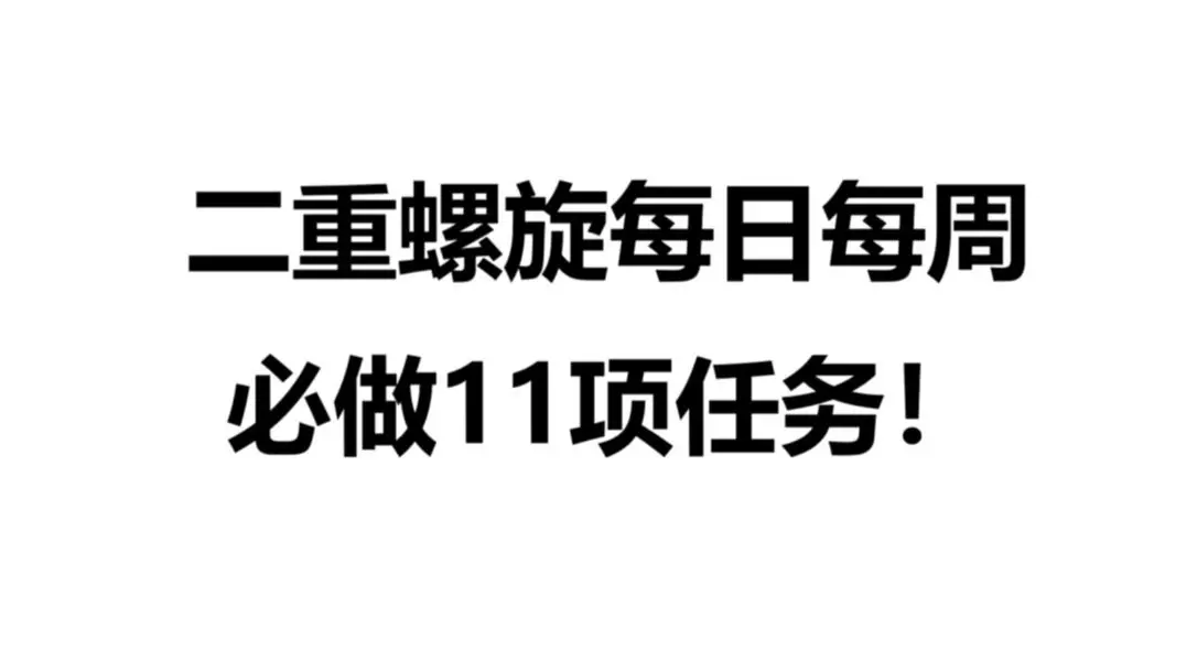每日每周必做的任务 莉兹贝尔、松露与榛子、西比尔、幻景、塔比瑟、玛尔洁、海尔法、耶尔与奥利弗、奥特赛德、达芙涅、黎瑟、兰迪、贝蕾妮卡、主角。二重螺旋开荒攻略剧情…