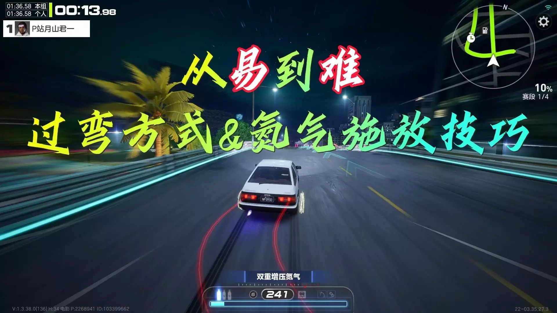 1.常规跑法 平跑到底桥面,到达桥中间时看准前方的路段,提前点漂控车下桥,下桥后使用双甩快速过弯,后续弯道均使用双甩通过,大概的用时为19秒左右。 2.快速跑法 到达桥中间时看准前方的路段,提前点漂控车下桥,之后使用双甩过弯,到达第二个弯道前使用反向集气,之后的弯道也同样使用双甩的技巧处理,由于多了一个氮气,整段发夹弯路段用时为18秒左右。 从连续的高能技巧可以看出,适当地在弯道与弯道之间补气可以有效地短缩时间,高手与大神之间的细微差距就在这里了,各位想要跑出好成绩的车友一定要掌握哦! 以上就是关于跑跑卡丁车手游森林发卡怎么快速过弯的全部内容了,希望对小伙伴们产生一些帮助,想要了解更多的游戏资讯,欢迎关注