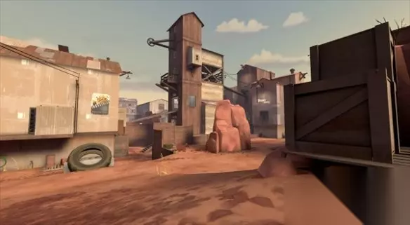 小屋:中央棚屋是捕获点的所在地。进入这个房间的方式有很多种,包括一个小沙井,可以跳下来,给玩家的受害者一个惊喜。 井:作为为数不多的有水的官方地图之一,在产卵点的左边或右边有一个小水池,这取决于他们所在的团队。乍一看,它可能看起来不够深,无法将玩家从火焰兵的火焰中扑灭,但在下水道附近,它们可能会蹲下并完全淹没。 房子:井的对面是房子。它下面有一条小地下通道,旁边是通往其内部的楼梯。从它的内部是一个坡道,通向该点上方的下降。 码:在房子旁边生成的每支队伍外面都有一个大院子。院子是通往房屋的入口,点下方的沟壑和基础建筑的屋顶。它包含一个大金属箱和一个用于掩护的混凝土块。 锯木厂