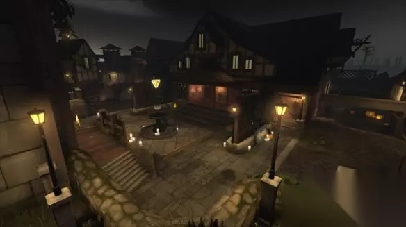 投票区:每轮的起始位置,有团队可以选择的特权,展示已选择特权的玻璃柜,以及房间两侧的补给柜。 起始码:玩家在投票获得福利后被带到的区域。大门上方有一个“控制点”标志,提供了一条通往控制点的较短路线,他们只需要绕过或越过岩石和带有藤蔓的木栅栏即可到达它。敞开的门口将玩家带到酒吧,酒吧通过一座简单的木桥与中央大楼相连。 控制点:位于地图中间,是城镇广场的喷泉。 中环大楼:管制站正前方的大楼。它的正面通道面向该点,被一堵墙一分为二。它的每一侧也有两个入口,一个面向大门,一个与酒吧相连,酒吧还有一个通往坟墓的楼梯。 坟墓:酒吧和中央大楼之间的低地,连接两者的桥梁下方。只有两条出路:上述中央大楼的楼梯和通往管制站的楼梯。 礼拜堂:紧邻管制站的小礼拜堂。它的门位于一个被墙壁覆盖的高架平台上,前面有一个小弹药包。 岩石:一大堆岩石,作为那些穿过大门前往控制点的人的掩护。可以使用耀斑和爆炸性跳跃等跳跃技术跳过它们。 峡谷