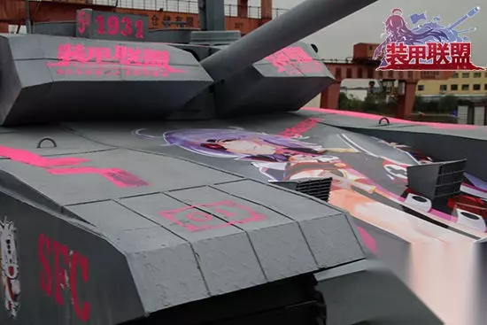 【精钢坦克 定制涂装】 此次,装甲联盟斥资打造1:1精钢坦克,所有部件均还原经典坦克XX【型号需替代】,所有部件均为精钢,从视觉上看与军用坦克基本无差别。在此基础上,《装甲联盟》采用定制涂装,在车身上喷绘有游戏角色形象,以及代表台词,“痛”感十足,尽可能的还原游戏内的涂装系统带给玩家的独特游戏体验。