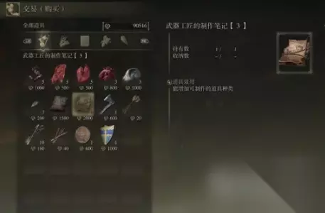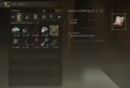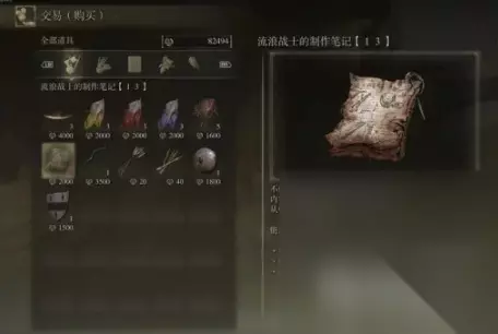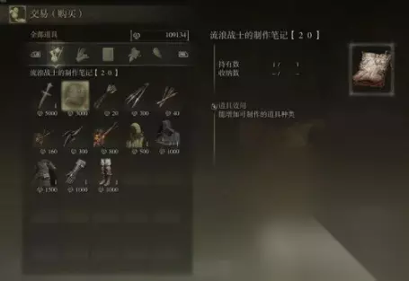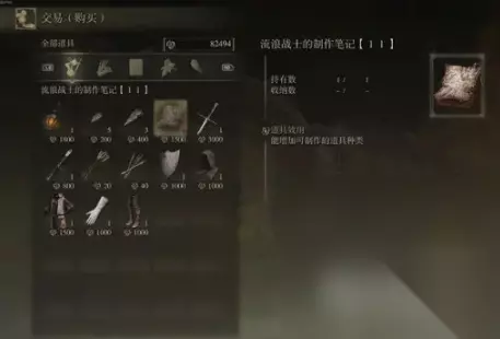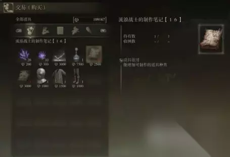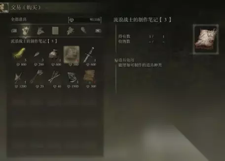 出售武器工匠的制作笔记3、流浪战士的制作笔记5