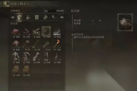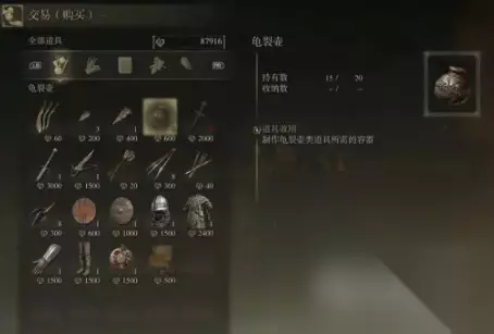 出售物品 出售3个龟裂壶、流浪战士笔记1和2、传道士的制作笔记1