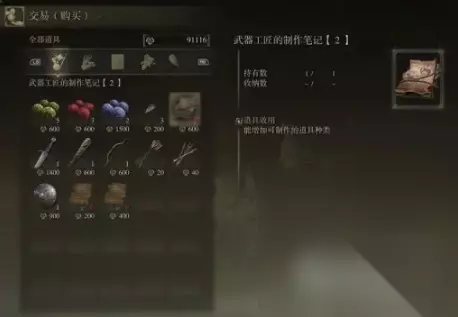 出售武器工匠的制作笔记2