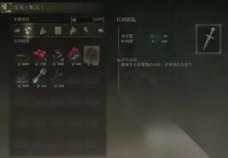 出售龟裂壶1个、石剑钥匙1个、流浪战士的制作笔记15