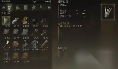 出售调香瓶1个、哨兵火把(可以看到隐形刺客敌人)