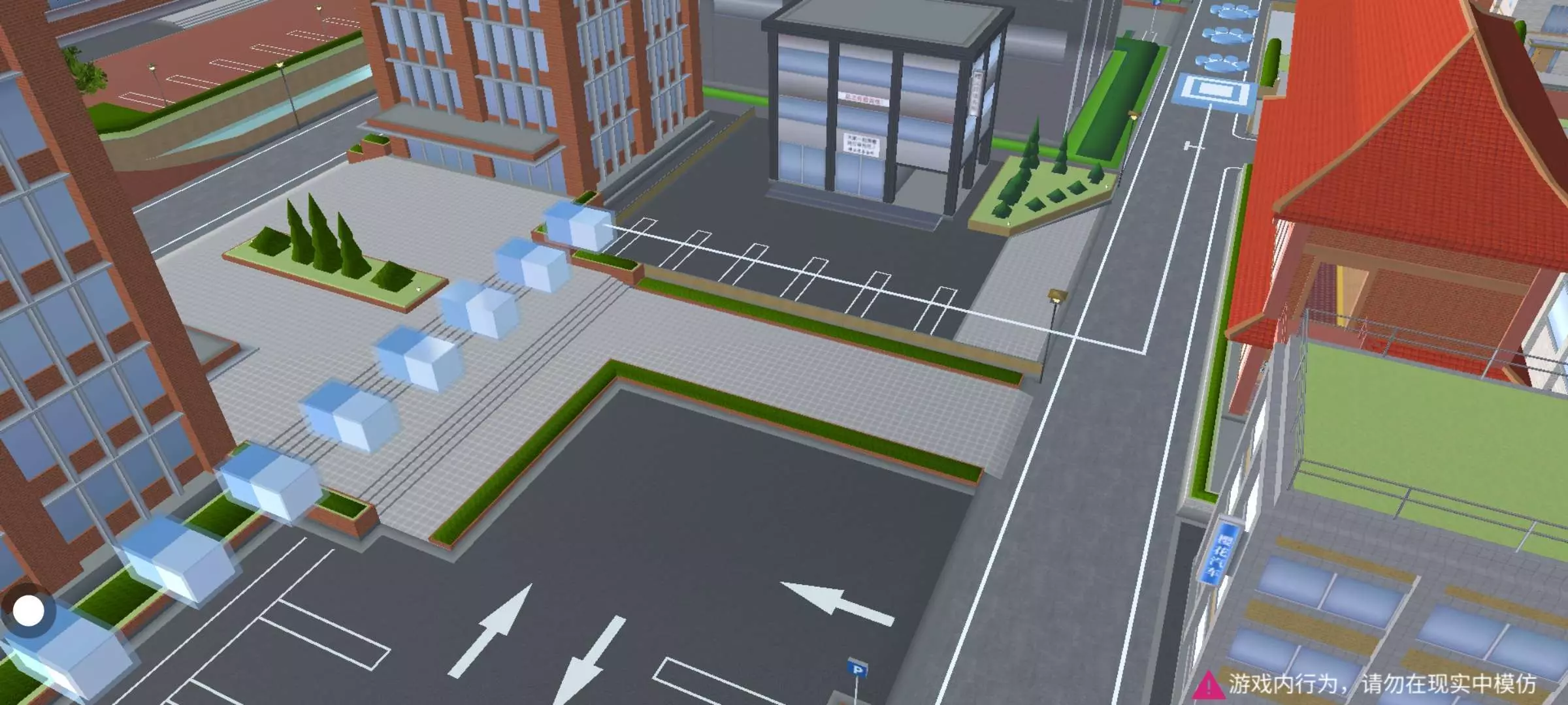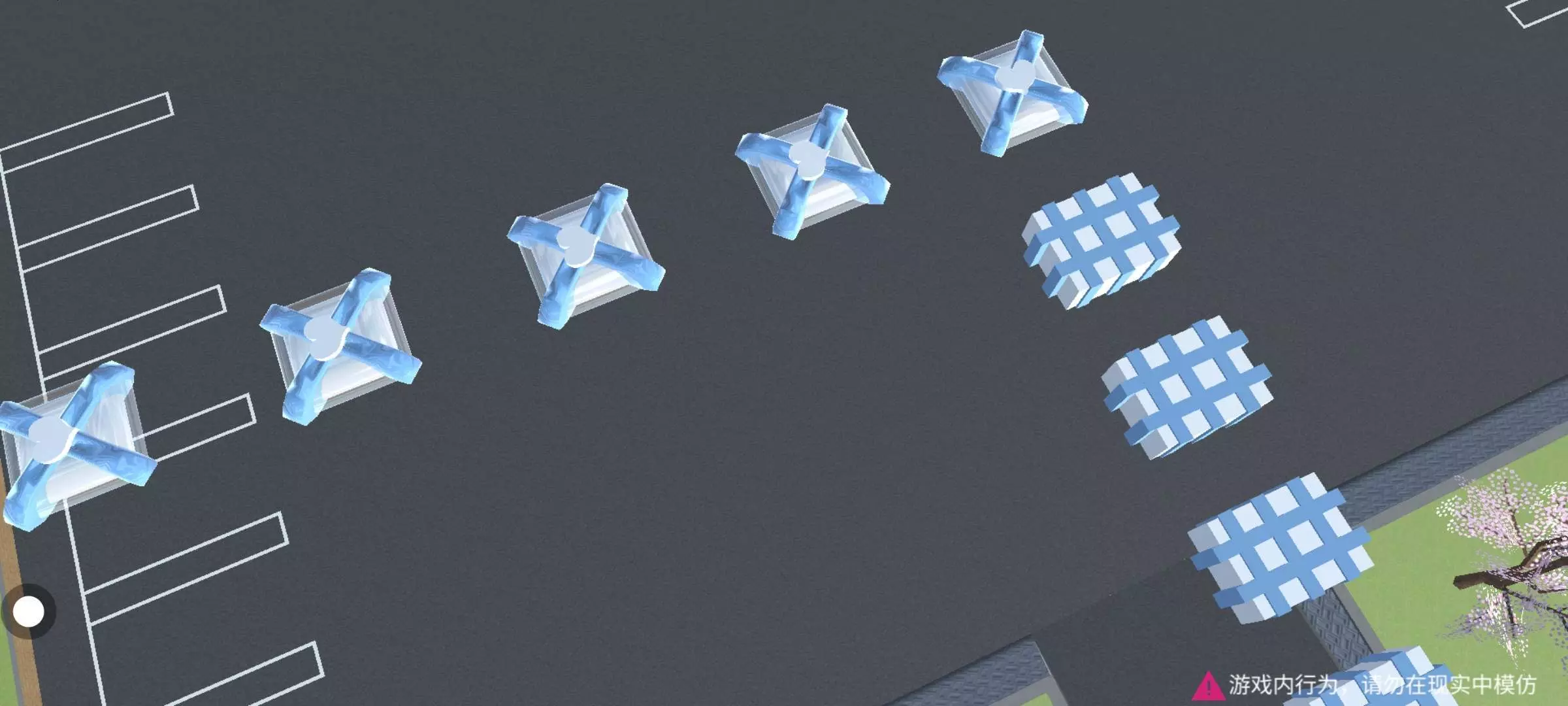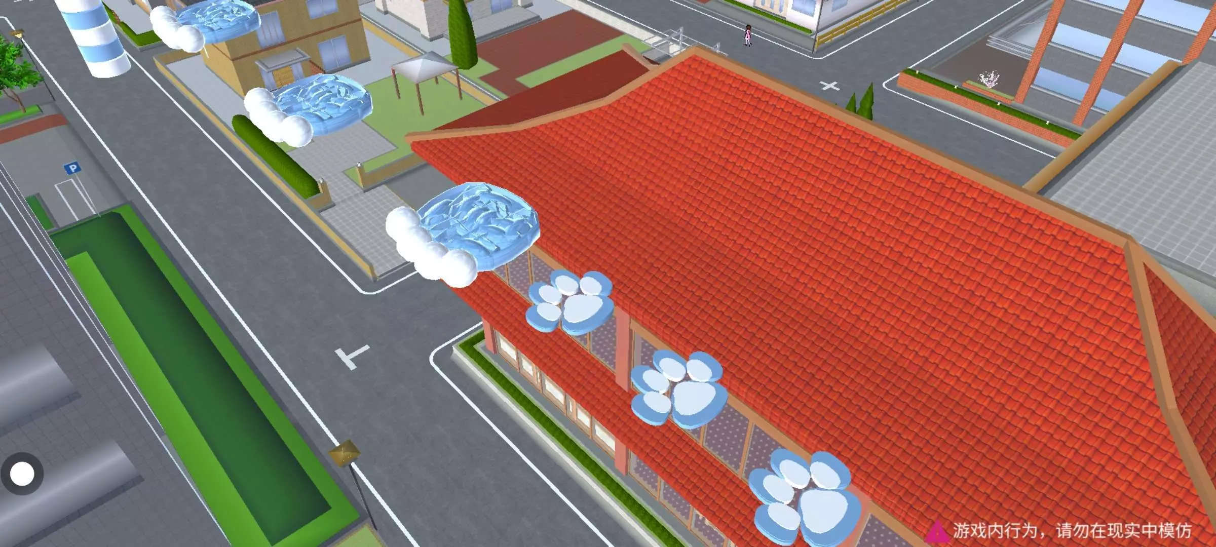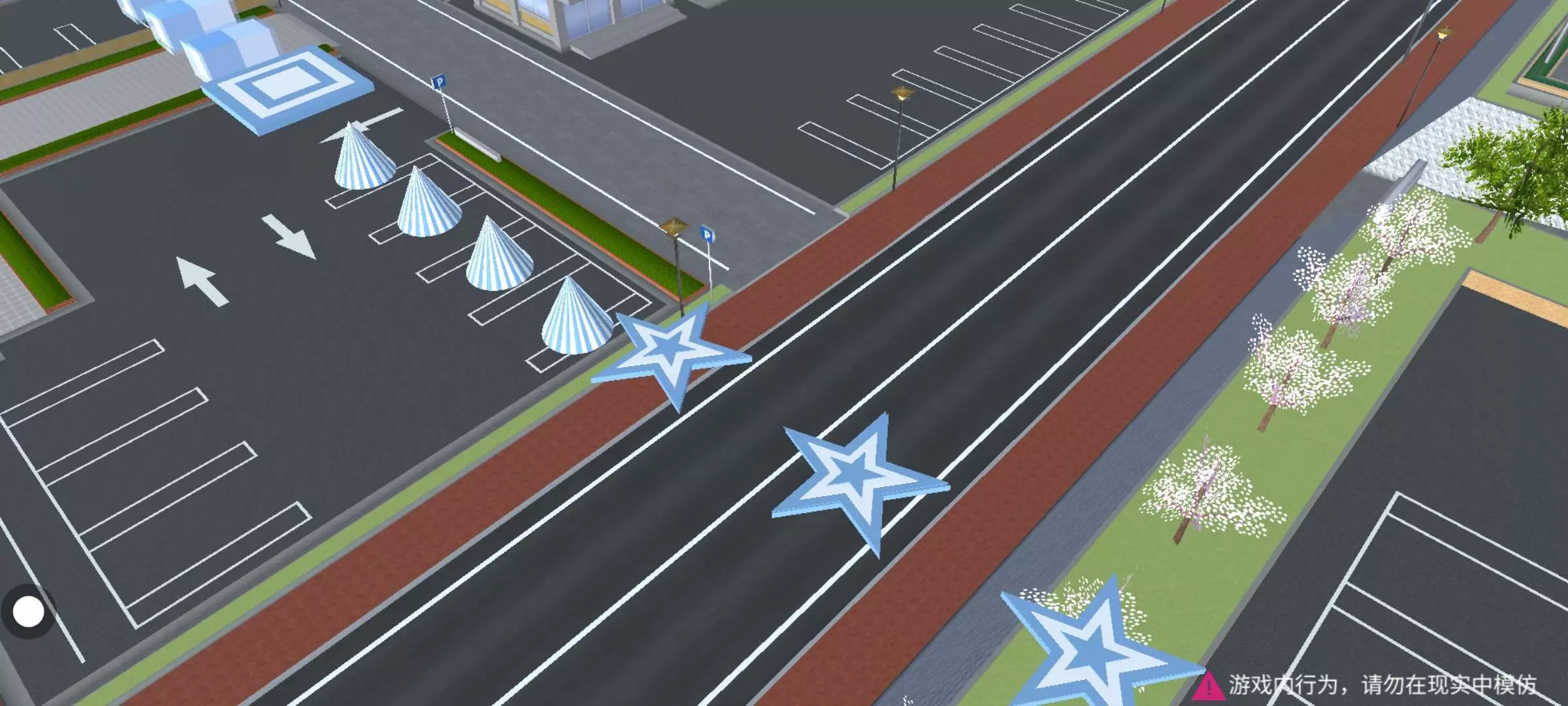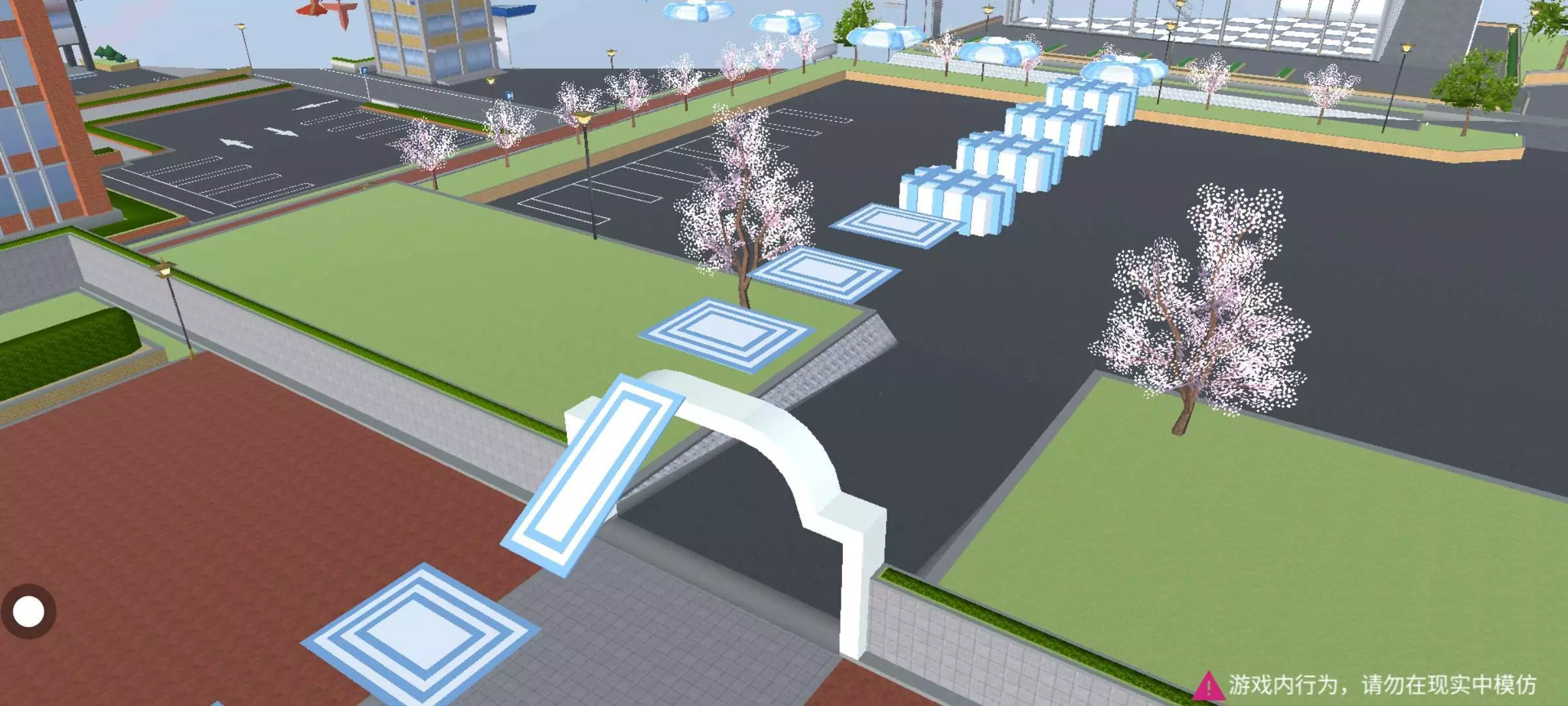 跑酷以蓝白色为主,起点有一个打卡点,关卡中有染色道具(六芒星,方块,猫爪),踩一下就可以了~有蹦床,可以跳得很高哦(yc不知),还有圆锥,走钢丝等比较难的关卡
