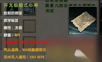 仅有“入门”和“进阶”书页,只能将所习古谱修至6层。随着九阴志的逐步开放,仅有6层的古谱还谈不上“金字塔尖”。此时,大侠们若想精进几分,不难打听到江湖中有一位精通太极拳古谱的隐世高人。大侠们若是诚心修习,那就带上他最喜欢的“噬魔散”去碰碰运气吧!