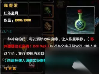 收集到足够的“噬魔散”后,便可依照道具说明前往隐世高人“癫狂道人”所在之地一求所学了!