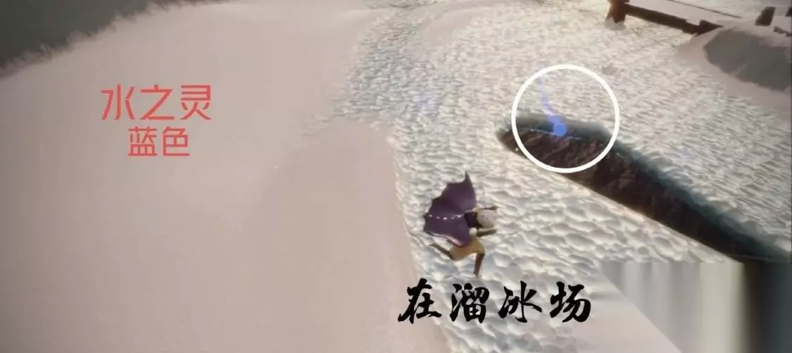 2、然后回遇境,进入霞谷地图,顺着滑道来到霞谷的溜冰场,水之灵就在溜冰场内,是蓝色的光球。