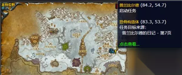 这是魔兽世界中普兰比尔德的日记任务攻略,需找到该日记的第4-7页,交给龙骨荒野暮冬陵园的阿姆博·卡什完成任务,接取任务NPC为普兰比尔德,还提示了书页获取方向。