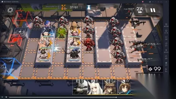 开局按照图中这样摆,其中3处放白金、守林、陨星、白雪,4选1,4处放练度最高的狙击,5处放巡林者面朝4那个方向。6处放奶妈。