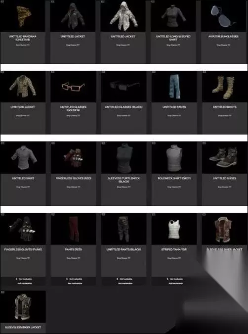 以上是蓝色的暴徒宝箱可以开出的物品,这款箱子中又有一款非常珍贵的沙漠围巾,另外还有两款史诗级的黑白连帽衫以及三款精英级别的服饰,其他一些普通的夹克、衬衫和一太阳镜等。