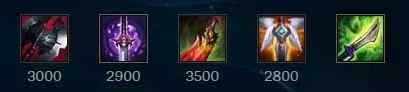 3.出装(最适合上分) 出门装建议大家选择多兰剑,如果前期比较难打,甚至可以双多兰过渡。护甲穿透与减冷却是锐雯最重要的属性,因此关于她的装备都是围绕着这两个属性来出的。 为了让前期能够更快达到高额减冷却,锐雯可以先做出战锤、燃烧宝石等装备,之后把燃烧宝石升级为黑切,即可直接获得30%减冷却和可观的穿甲效果。因此做出黑切之后,锐雯的伤害将获得质的提升,这也是锐雯真正开始发力的时间点。